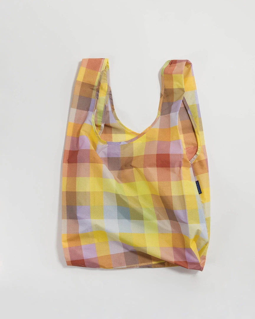 Q: What is super lightweight, can hold 50 lbs., and has a 70’s madras print all over it? A: This bag from Baggu! Seriously, it can hold fifty pounds. That’s like two and a half watermelons. (FYI: We looked that up. We didn’t know a watermelon’s weight offhand.)