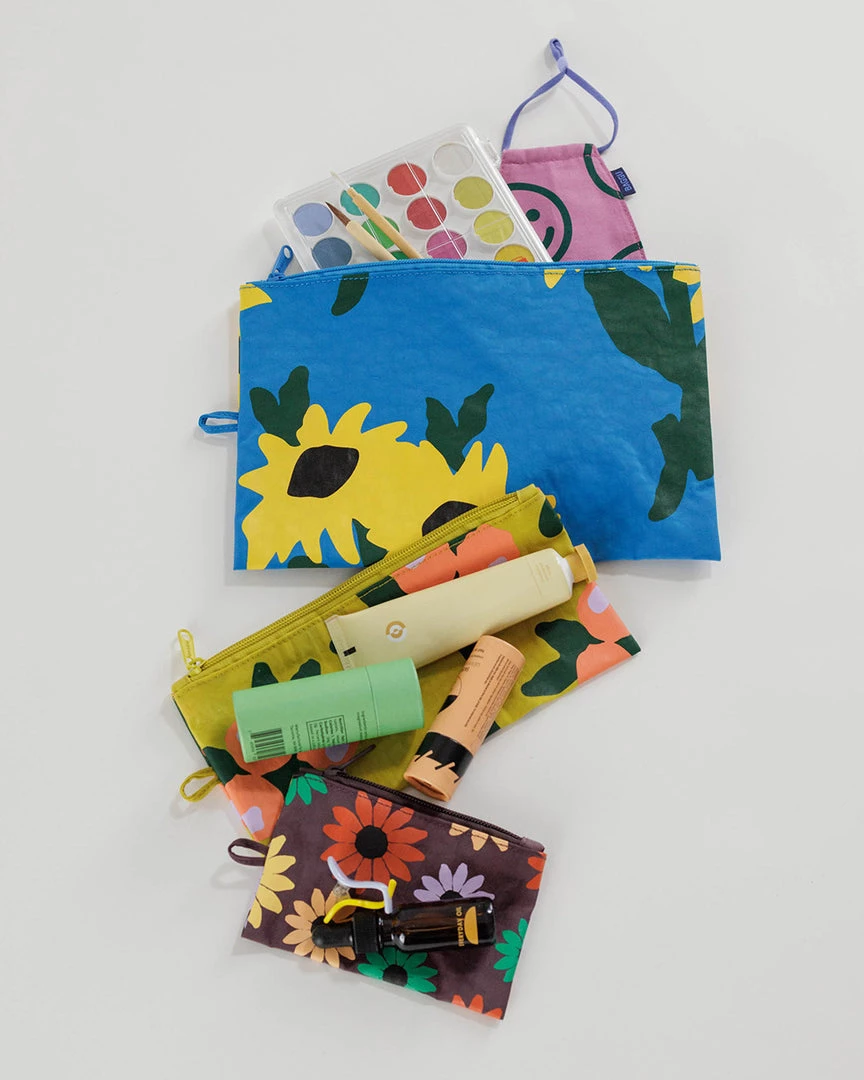 Pouches with possibilities. From Baggu, this set of three is made with a machine-washable nylon and each has a zip closure.