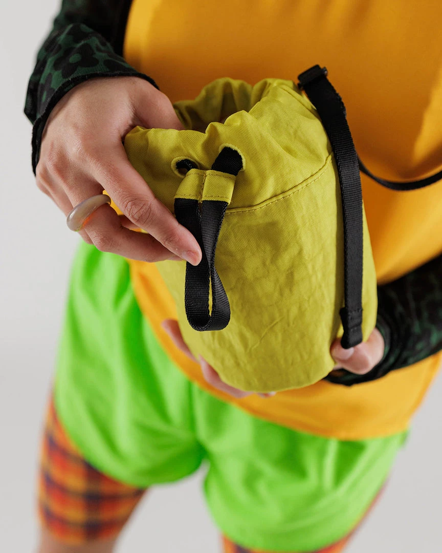 A bucket for just your essentials. This machine-washable bag from Baggu has a drawstring closure and adjustable strap.