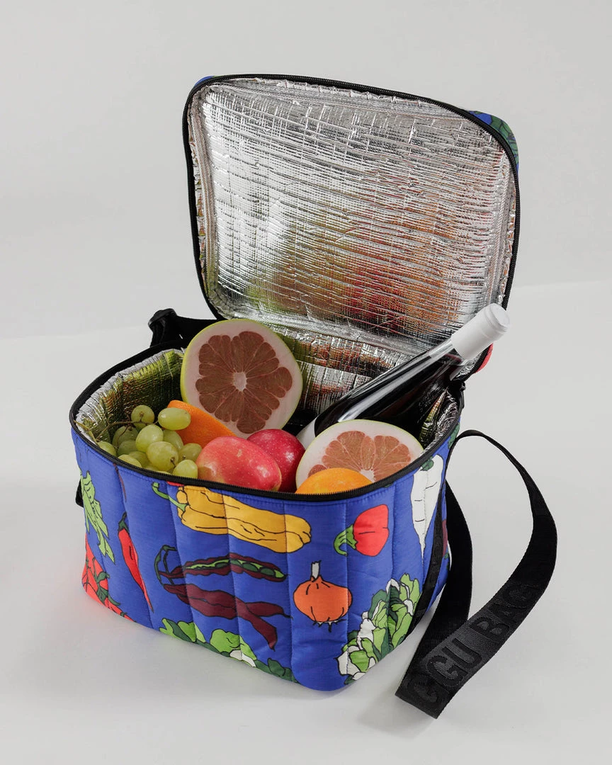 The chillest place for all your group snacking needs. From Baggu, this puffy bag has a zip closure, top handle, adjustable strap, and insulated interior.