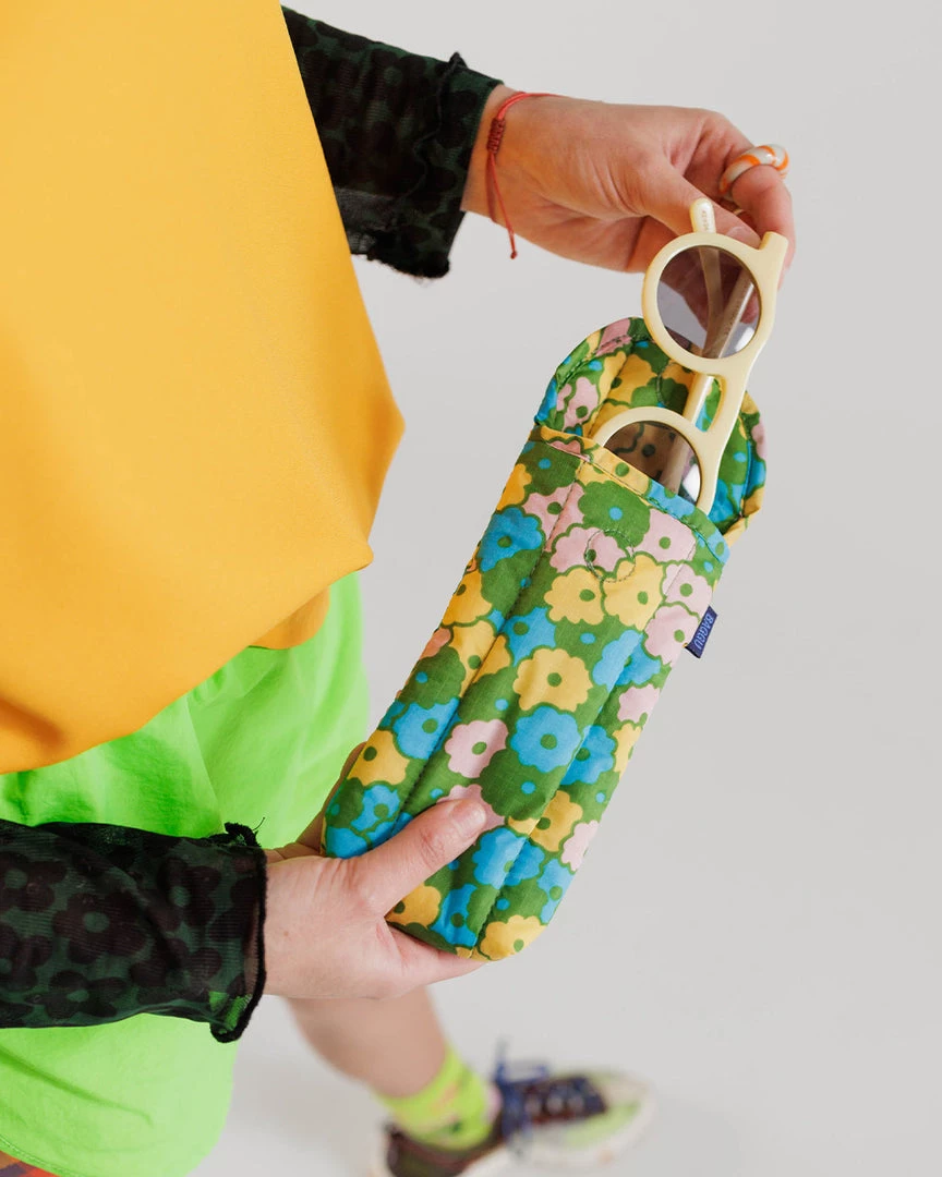 Now you really have no excuse to throw your loose sunglasses in the bottom of your bag ever again. This cushy, protective case from Baggu has a magnetic closure and is machine washable.