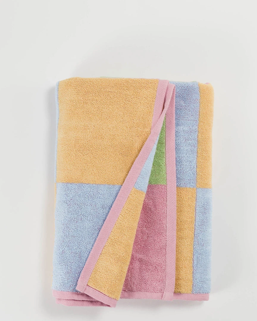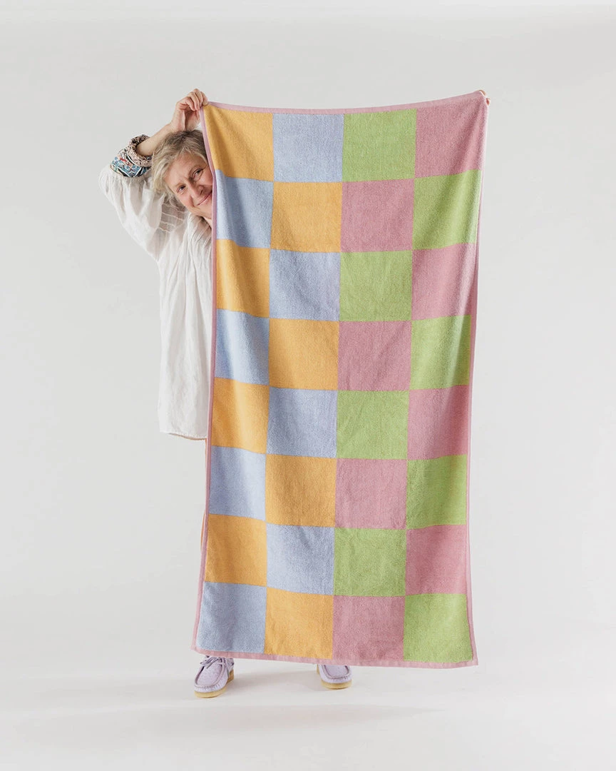 A bath towel definitely doesn’t have to be boring. Case in point: this one from Baggu. It’s made with organic cotton terry cloth and features a multi-colored checkered design.