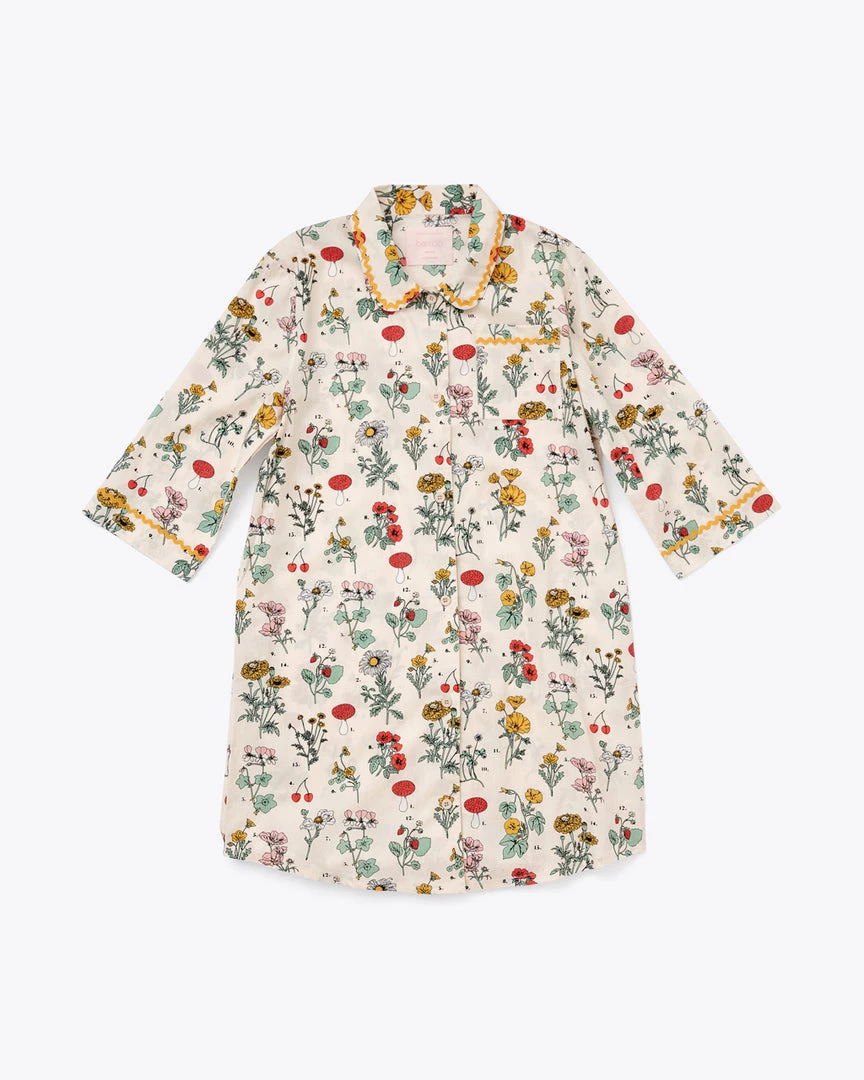 Almost too beautiful to wear. This soft, comfortable 3/4 sleeve leisure dress is 100% cotton voile, and it has a front patch pocket and rick rack trim.