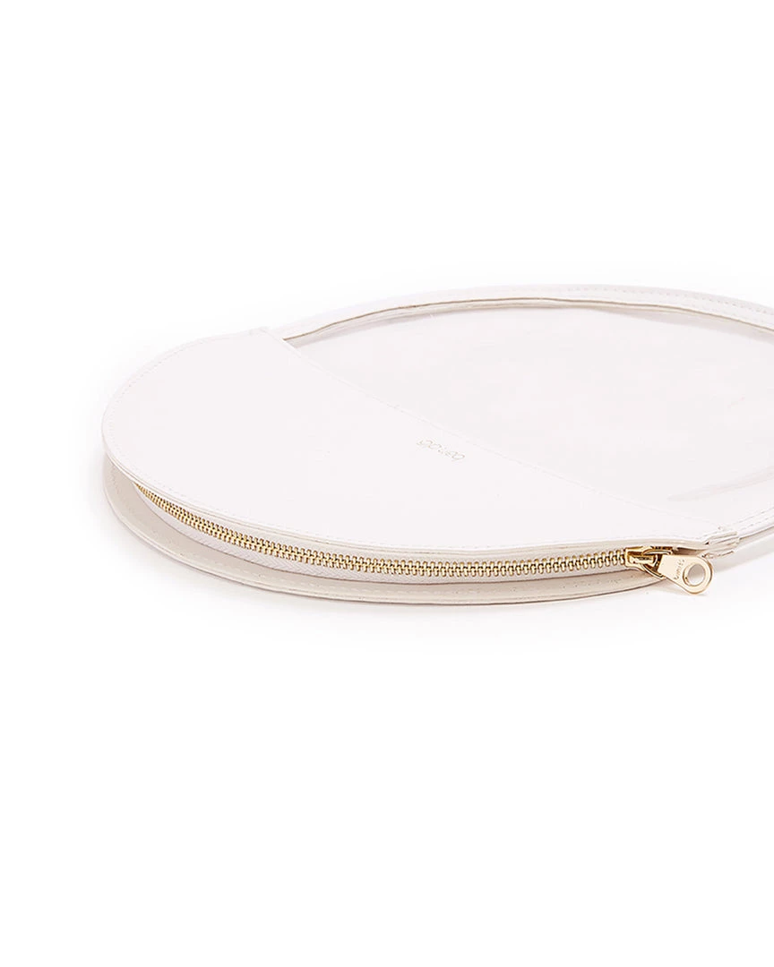We love our Peekaboo Clutch so much that we made a ridiculously cute circle version! It’s perfect for showin’ off your cool phone case, members only card, or chapstick collection. Quick warning though: not the best place for secrets!