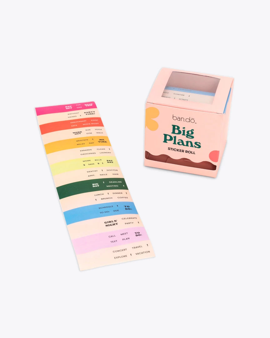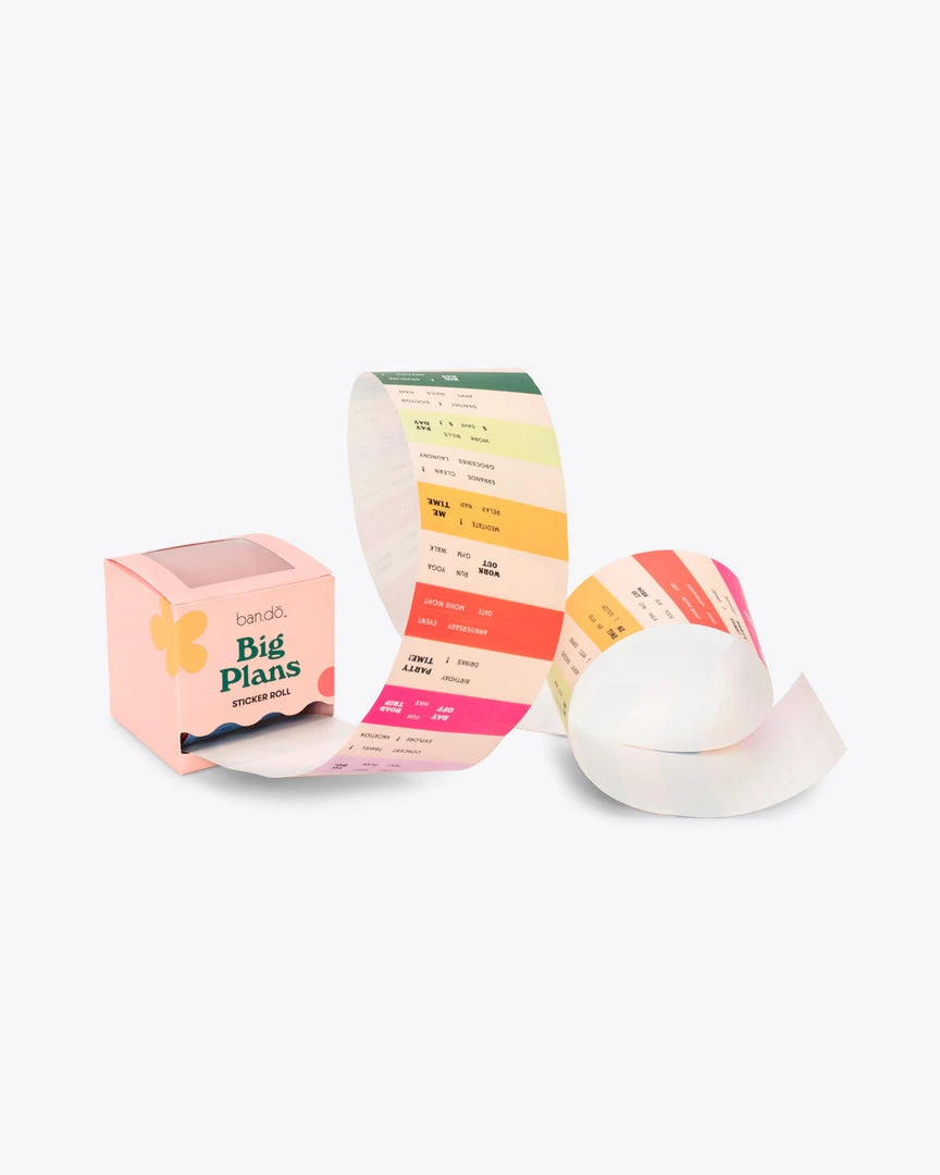 A ban.do planner isn’t complete without stickers. Each sticker on Issue 2 of our sticker roll was sized to perfectly fit in the month view of our planners so important events, tasks, and goals can easily be viewed at a glance. Plus, the box doubles as a desktop dispenser to make finding the perfect sticker for whatever’s going on a breeze.