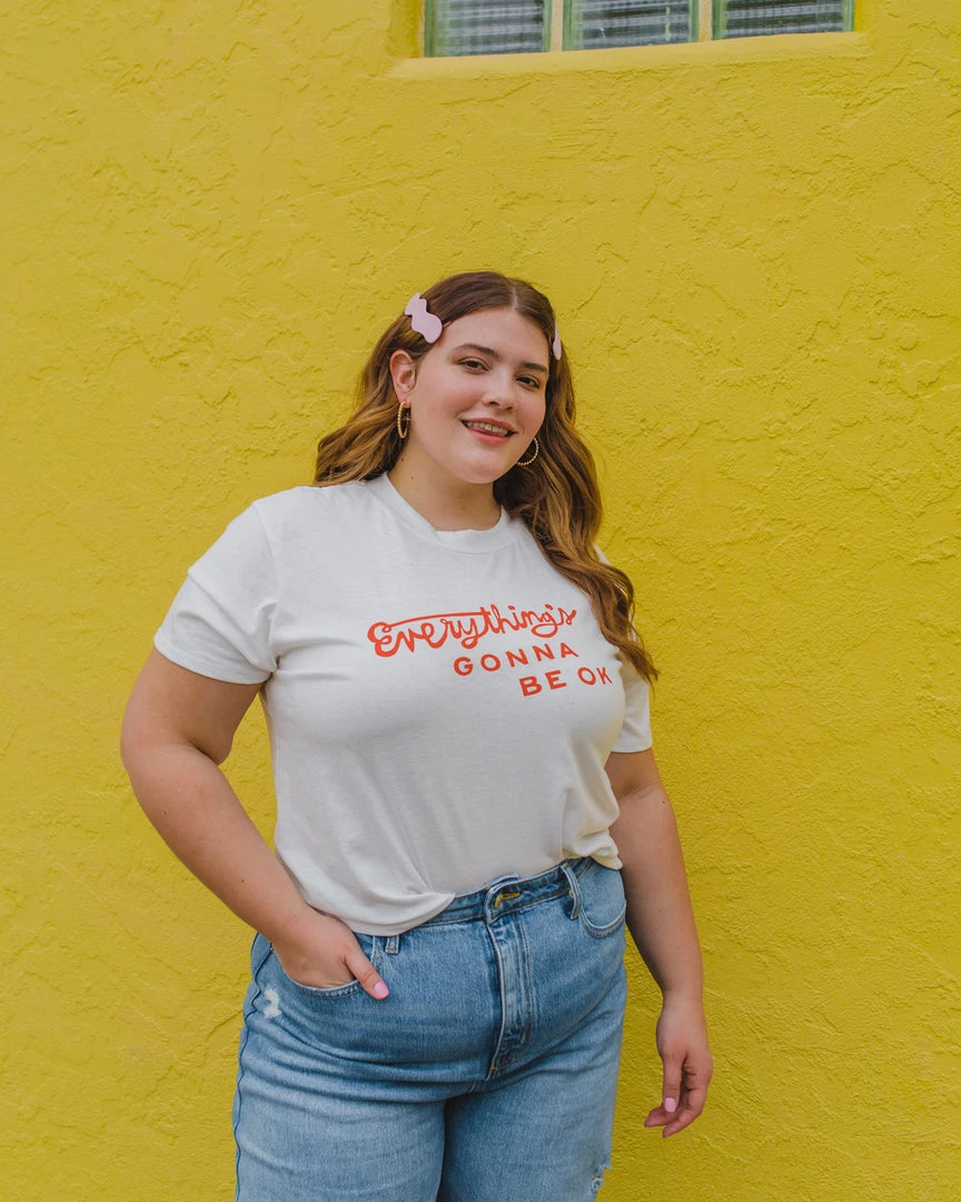 Sometimes you need the friendly reminder. This t-shirt has a boxy fit, short sleeves, and a slightly cropped length.