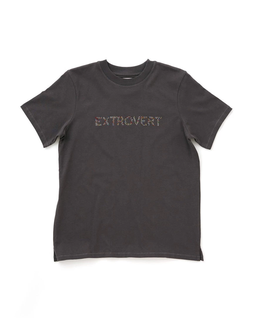 Own your personality type with this extrovert tee. It has a relaxed fit, soft fabric, and a design with heatset rhinestones that won’t fall off in the wash.