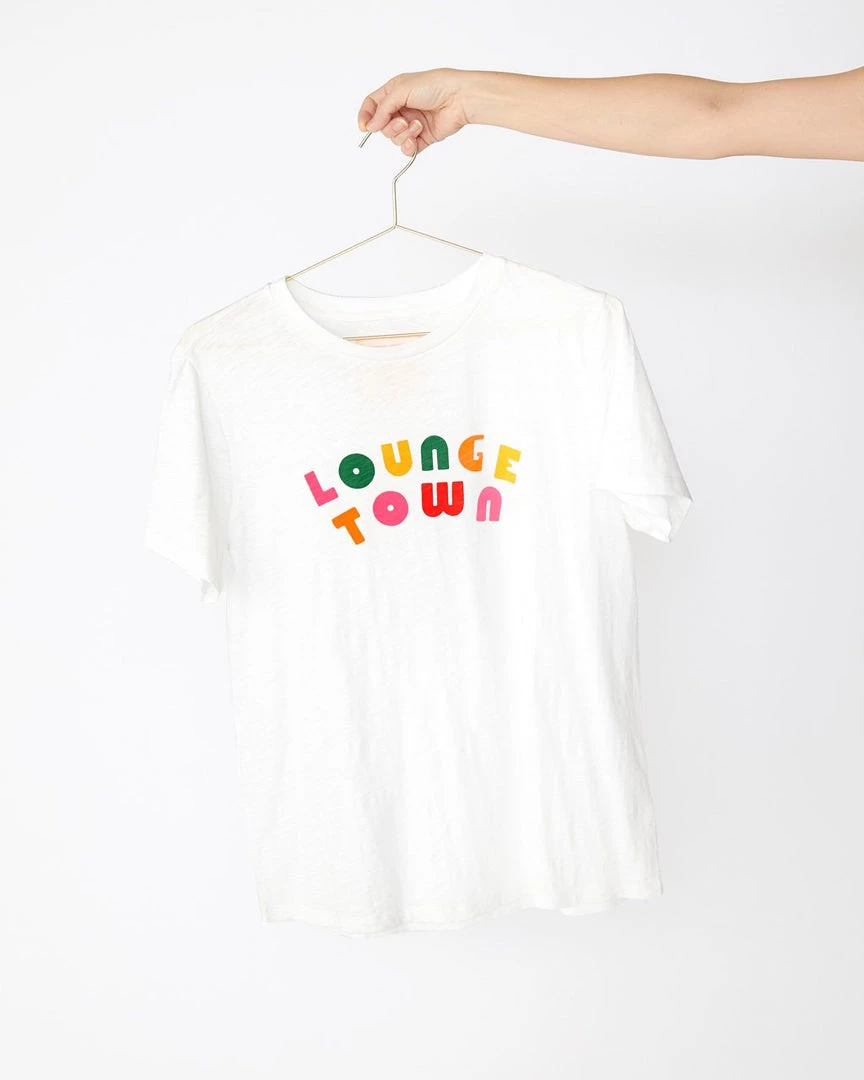 Lounge Town? We’ll take a one way ticket. And on the way there, we’ll be wearing this classic tee made with slub cotton and a colorful design.