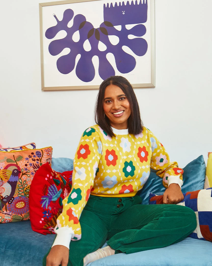 Inspired by that amazing vintage quilt you once saw. This cozy sweater has drop shoulders, balloon sleeves, and ribbed trim.