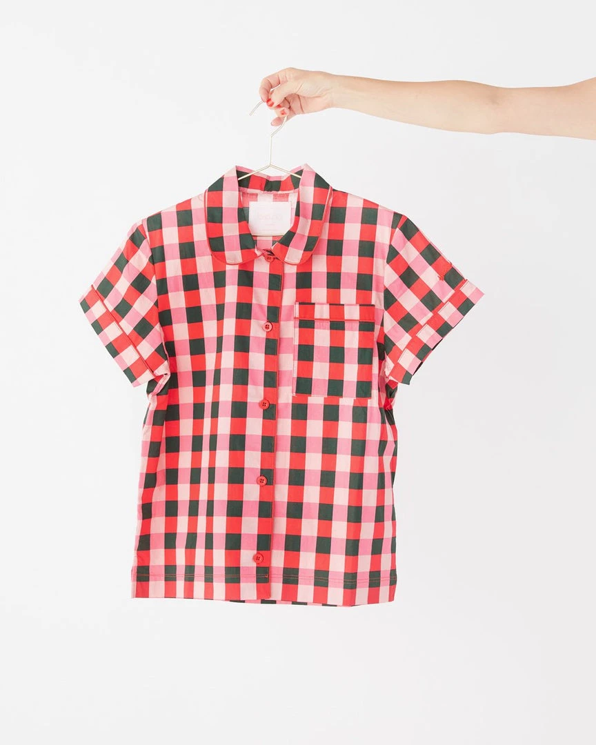PJs for the cutest lumberjack in town. This soft, comfortable short sleeve leisure shirt has a classic fit, is 100% cotton poplin, and features an all over rotary print.