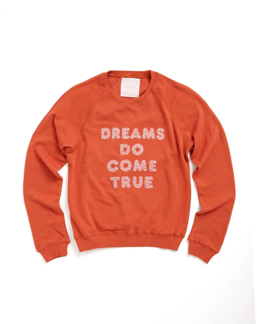 If you ask us, the existence of this sweatshirt is all the proof we need that dreams really do come true. Between the dreamy rust color the dreamy flocked, flowery letters, you might need to pinch us to make sure we didn’t just dream this up. We’re gonna say dream again just because we can. Dream.