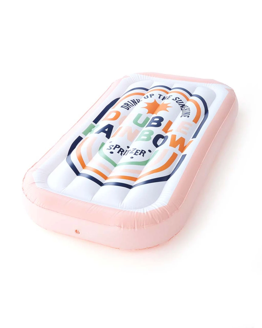 Soak up the sunshine and drink up the sunshine all at once. This giant inflatable is made of heavyweight vinyl with a fun screen-printed spritzer can, a raised frame, and sectioned grooves.