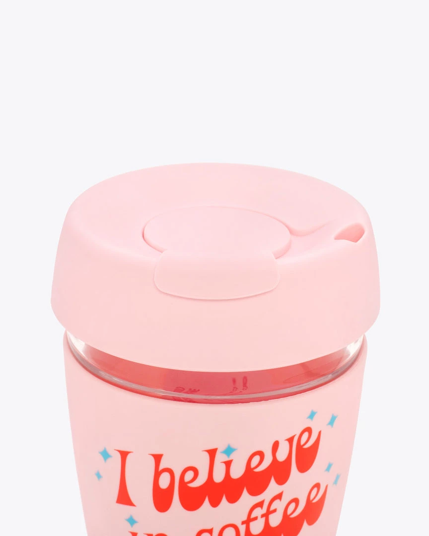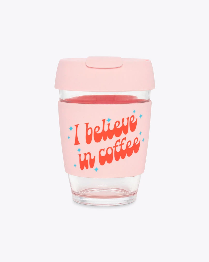 Wherever you go, coffee goes too. And it’s about time you had a glass travel mug that can keep up. This one has a closable lid, soft sleeve, and dreamy design.