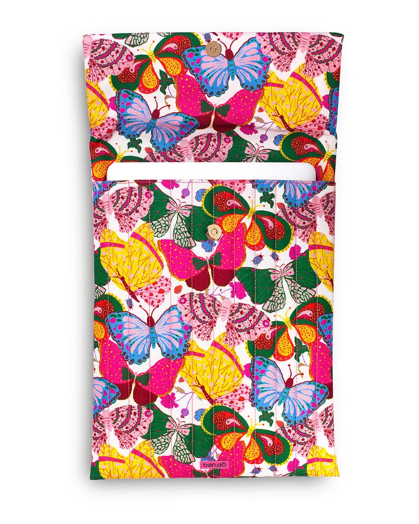 A cozy home for your laptop. This nylon sleeve fits a 15 in. laptop, has a snap closure, and comes with a clippable card pouch!