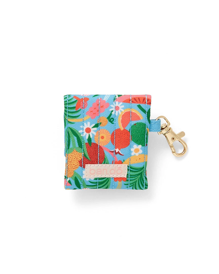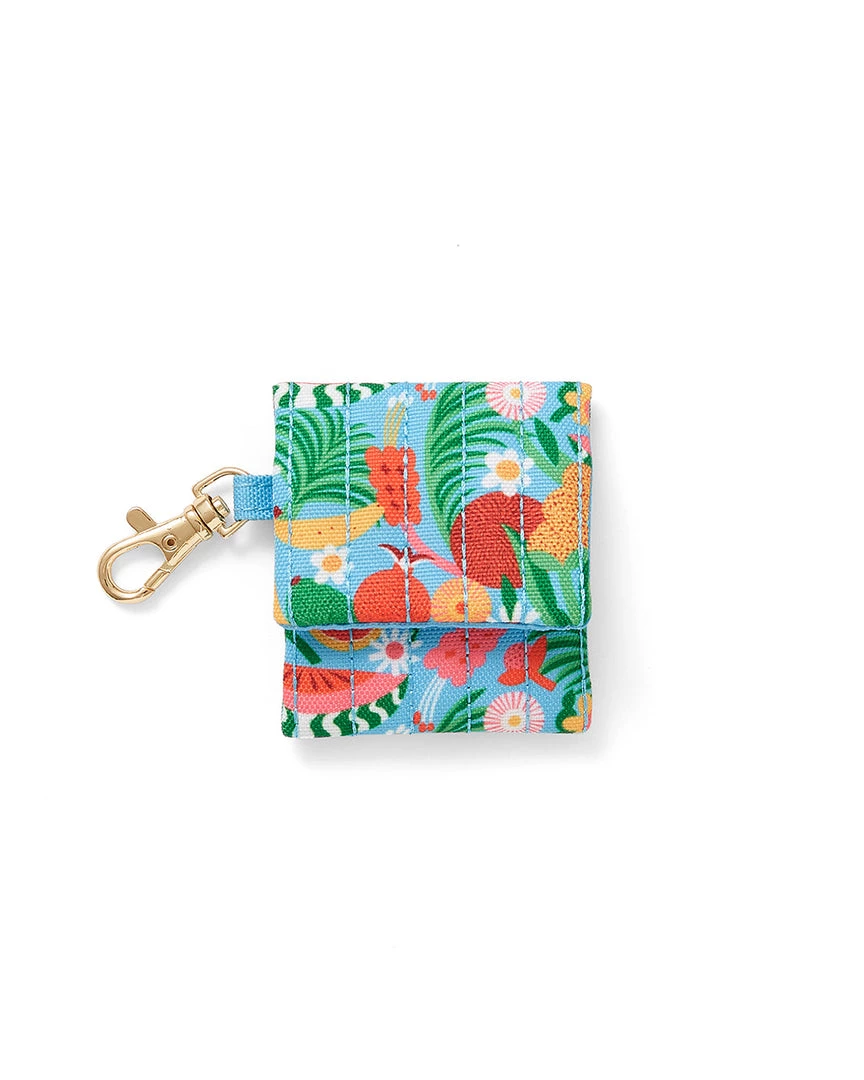 A handy new home for your earbuds. This case has a quilted exterior, snap closure, and gold clip.