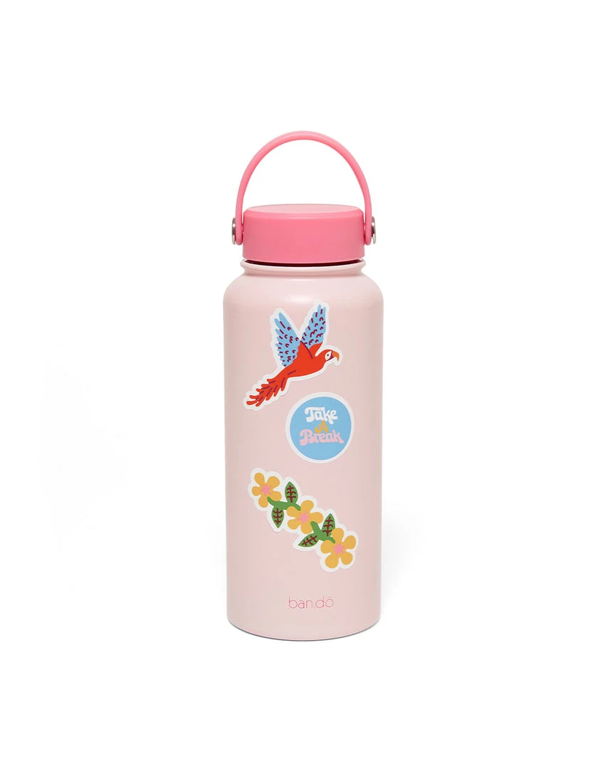 This bottle could convince anyone to drink more water. It has a bright, colorful design, lid with carrying strap, and fun stickers (!) to really make it your own.