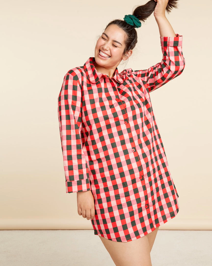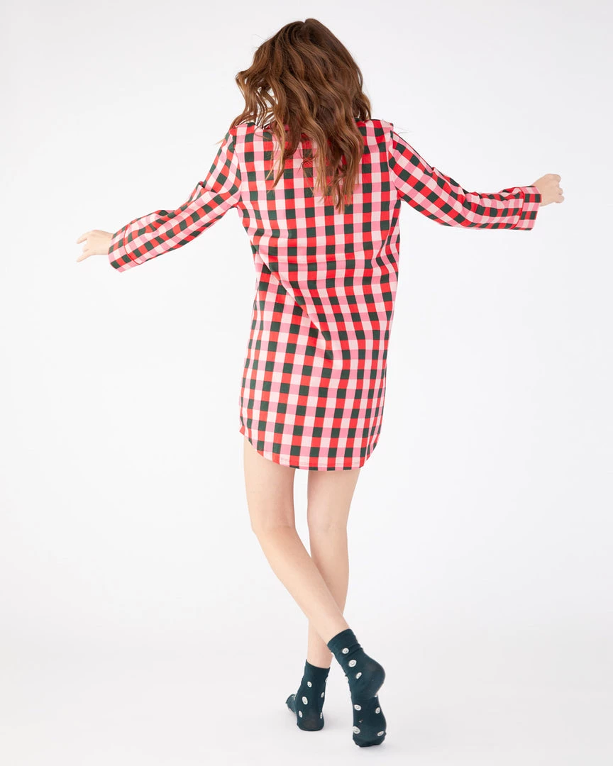 PJs for the cutest lumberjack in town. This soft, comfortable long sleeve leisure dress has a classic fit, is 100% cotton poplin, and features an all over rotary print.