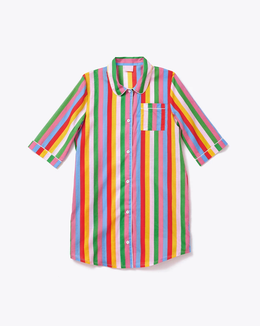 Whenever you need a pop of rainbow (i.e. always). This 3/4 sleeve leisure dress is super comfortable, made of 100% cotton voile, and has a front patch pocket.