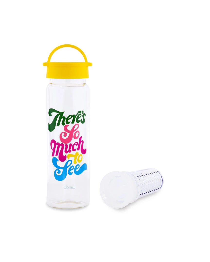 Bring your water to a whole new level with this infuser water bottle. It’s made of glass, has a plastic lid with a handle for easy carrying, and features a plastic infuser that makes it great for drinking water with cucumber, lemons, or anything else you want to infuse! Just put the fruit and water together in the main compartment, insert the infuser, and drink up.