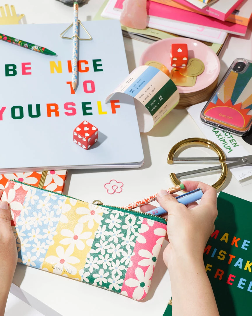 The best home for all those pencils or pens (or whatever you want—it can hold a lot more than just writing utensils). This pouch is made from a smooth leatherette and has a gold zipper and mint lining on the inside.
