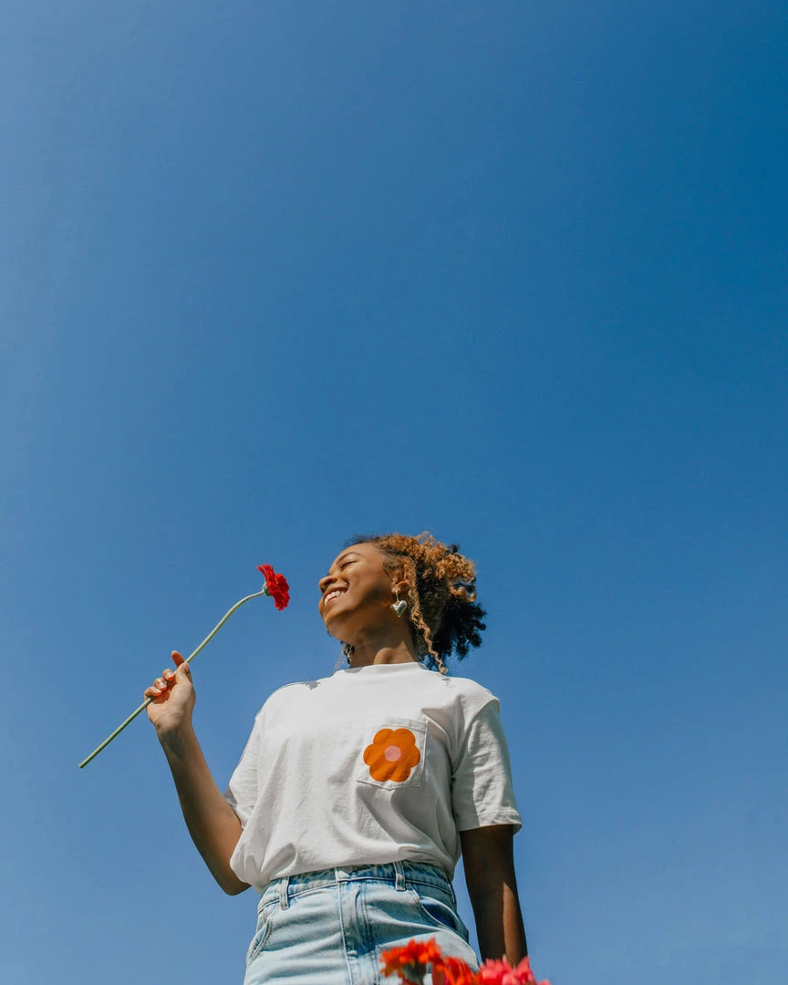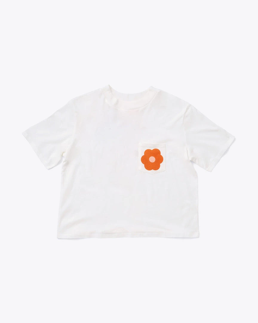 The hottest event of the season—flower spotting! This boxy-fit t-shirt has short sleeves, a front patch pocket, and a slightly cropped length.