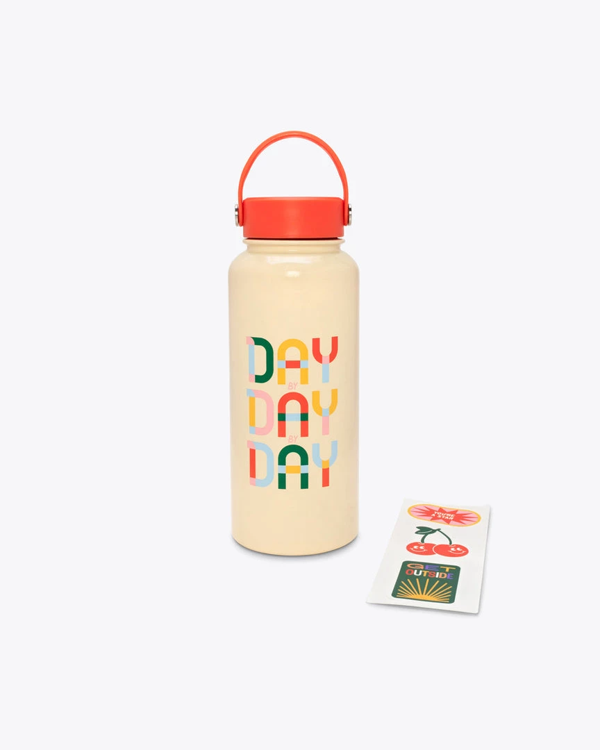 This bottle could convince anyone to drink more water. It has a bright, colorful design, lid with carrying strap, and fun stickers (!) to really make it your own.