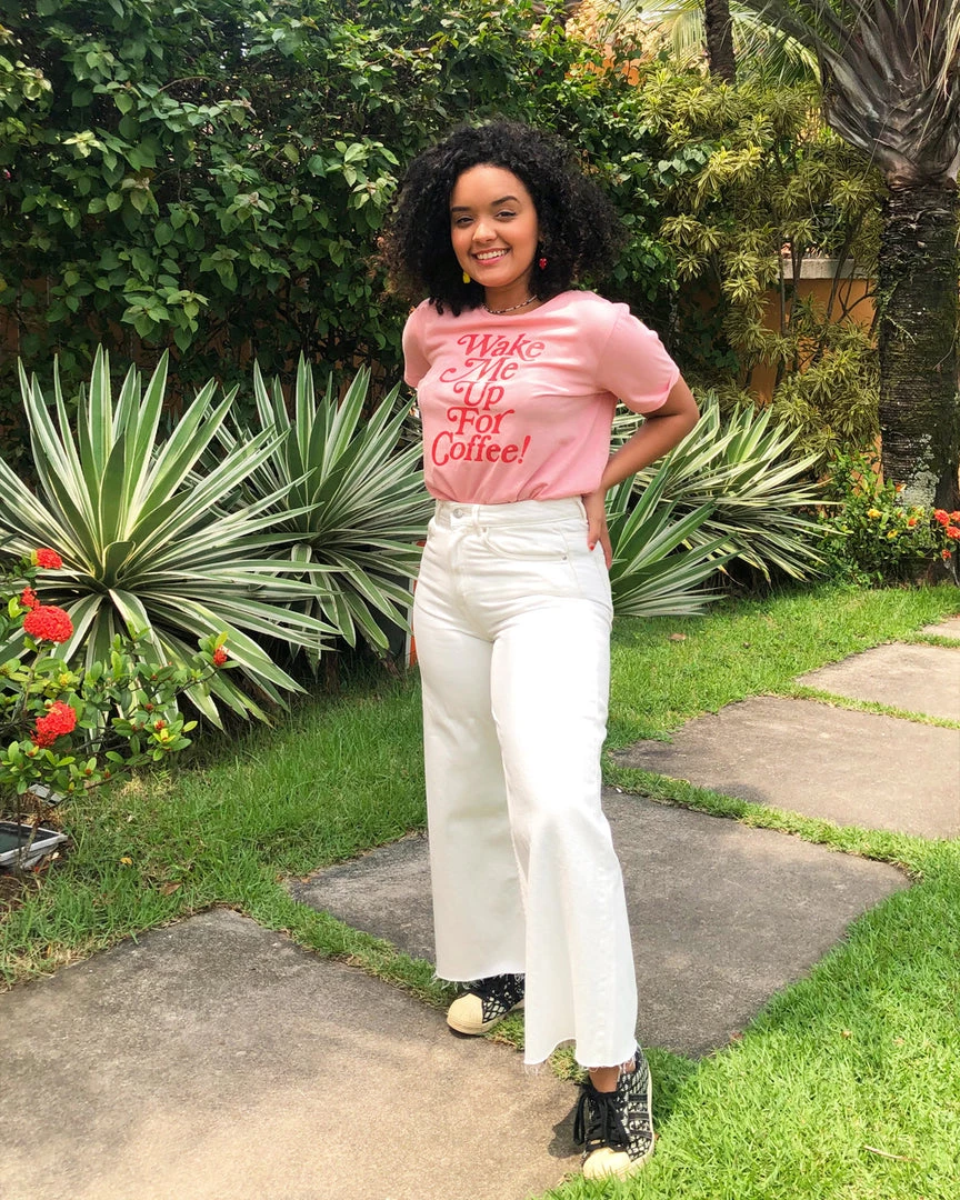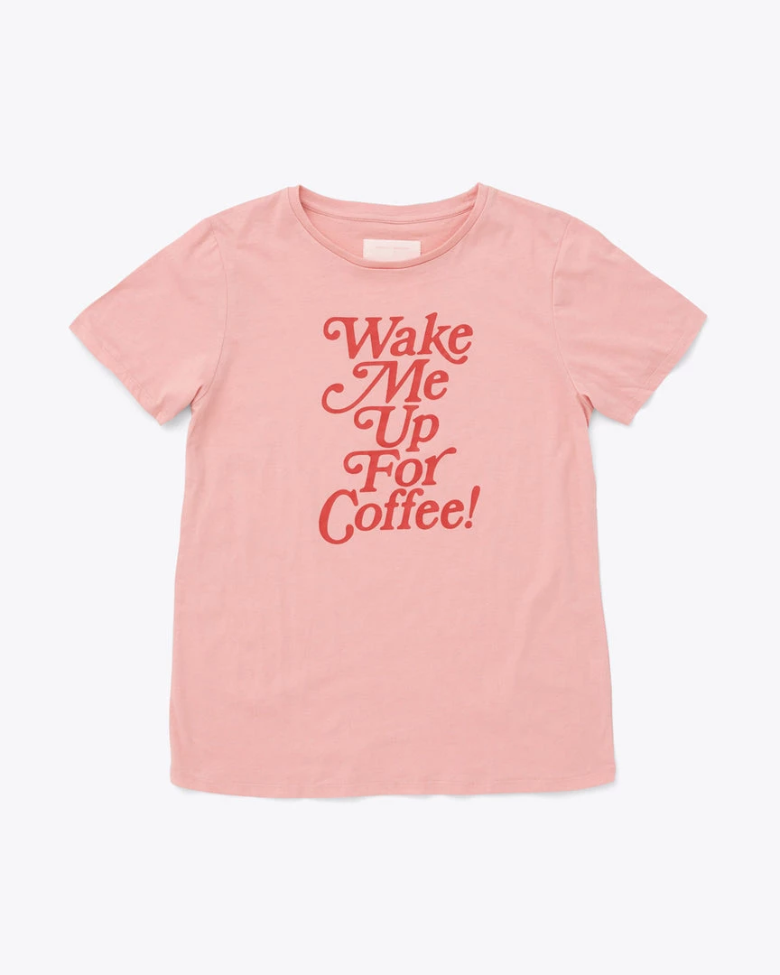 Dream a little dream of your morning coffee in this soft, comfortable short sleeve t-shirt with a classic fit and a screen printed design.