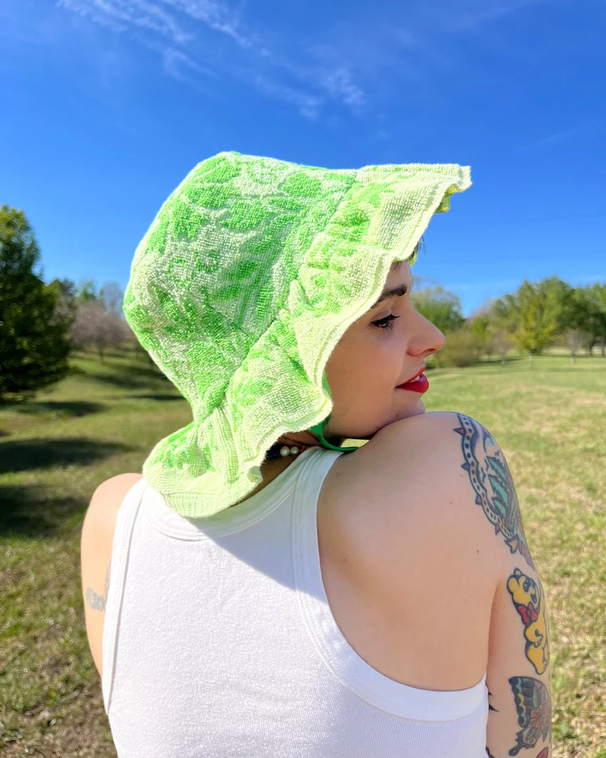 - Artisan-made with love and care! Designed and cut in rural NC and sewn by skilled sewists in NYC. This hat is one-of-a-kind and made from repurposed vintage cotton towels and vintage fabric lining.