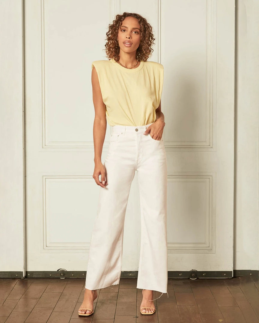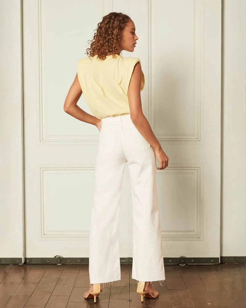 Nothing like a fresh pair of white jeans. From Boyish, these have a high waist, wide leg, and raw hem.