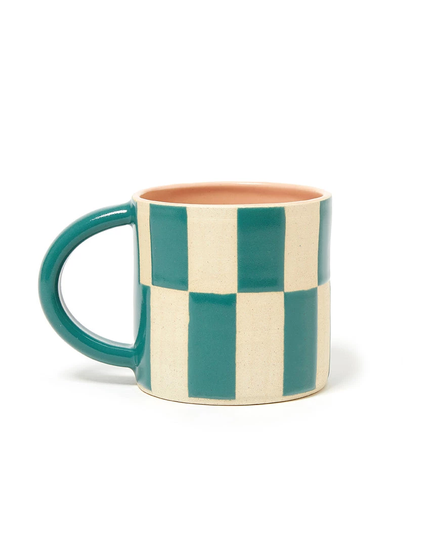 Christi Ahee Ceramics Checkered Mug – Teal/White Living