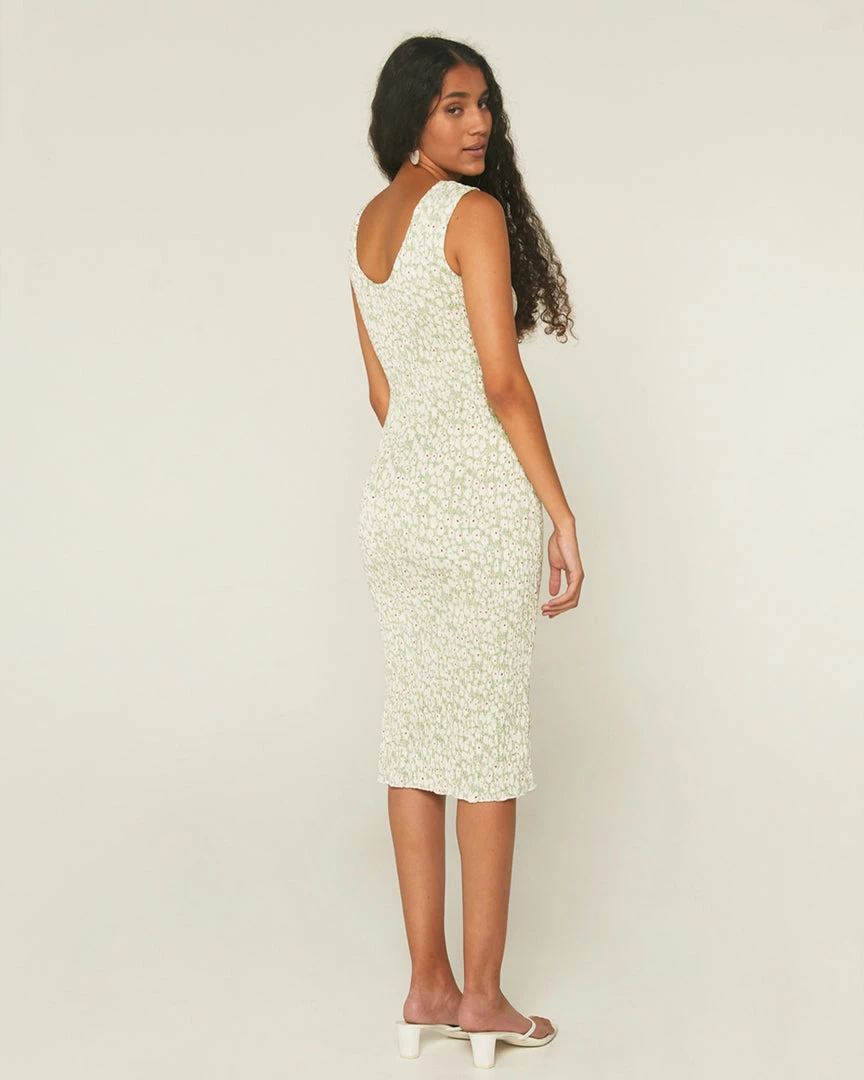 This is an A+ dress. From Compañía Fantástica, it has a form-fitting silhouette, crew neckline, and below-the-knee length.