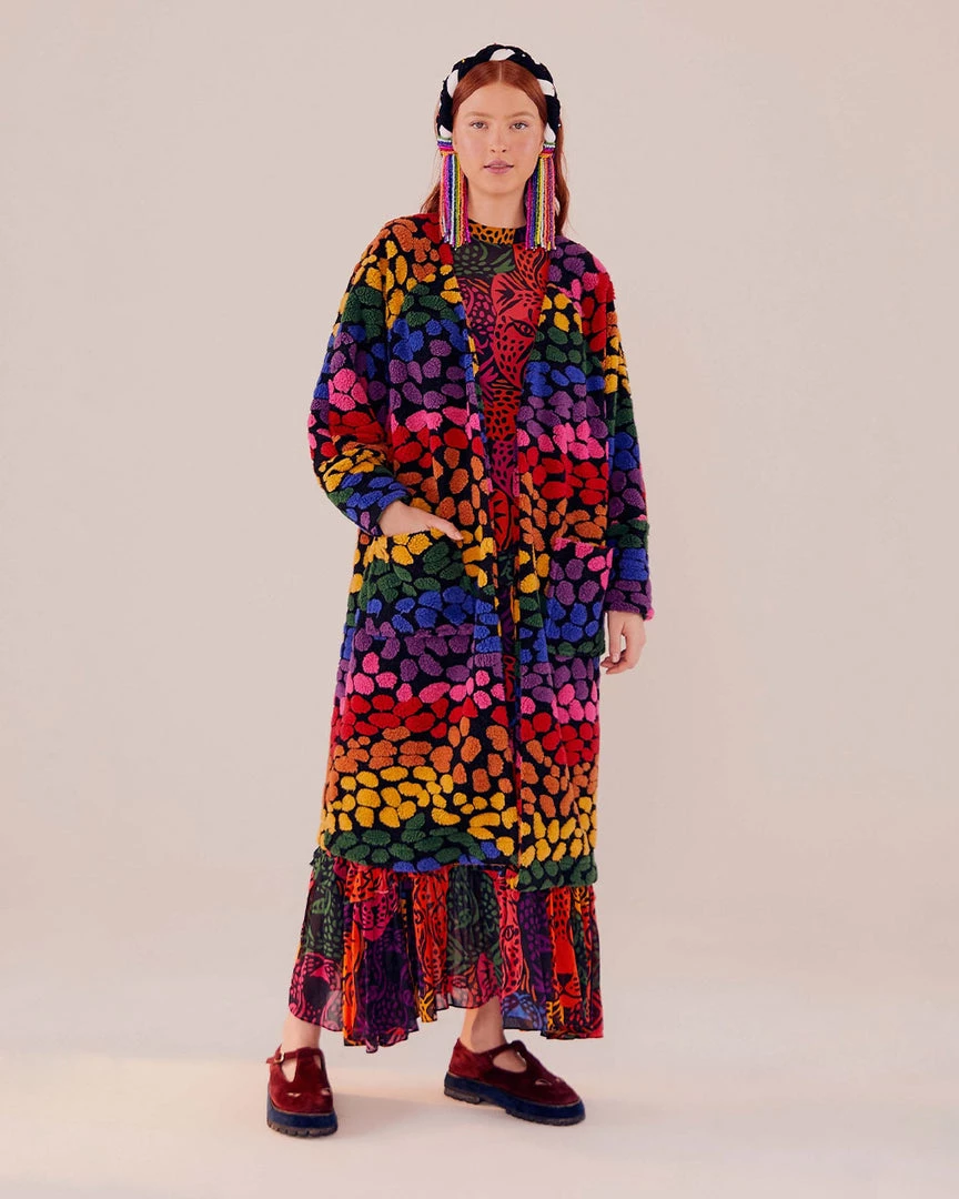No rainbow leopards were harmed in the making of this cardigan. From Farm Rio, it has long sleeves, an open front, and a slightly oversized fit.
