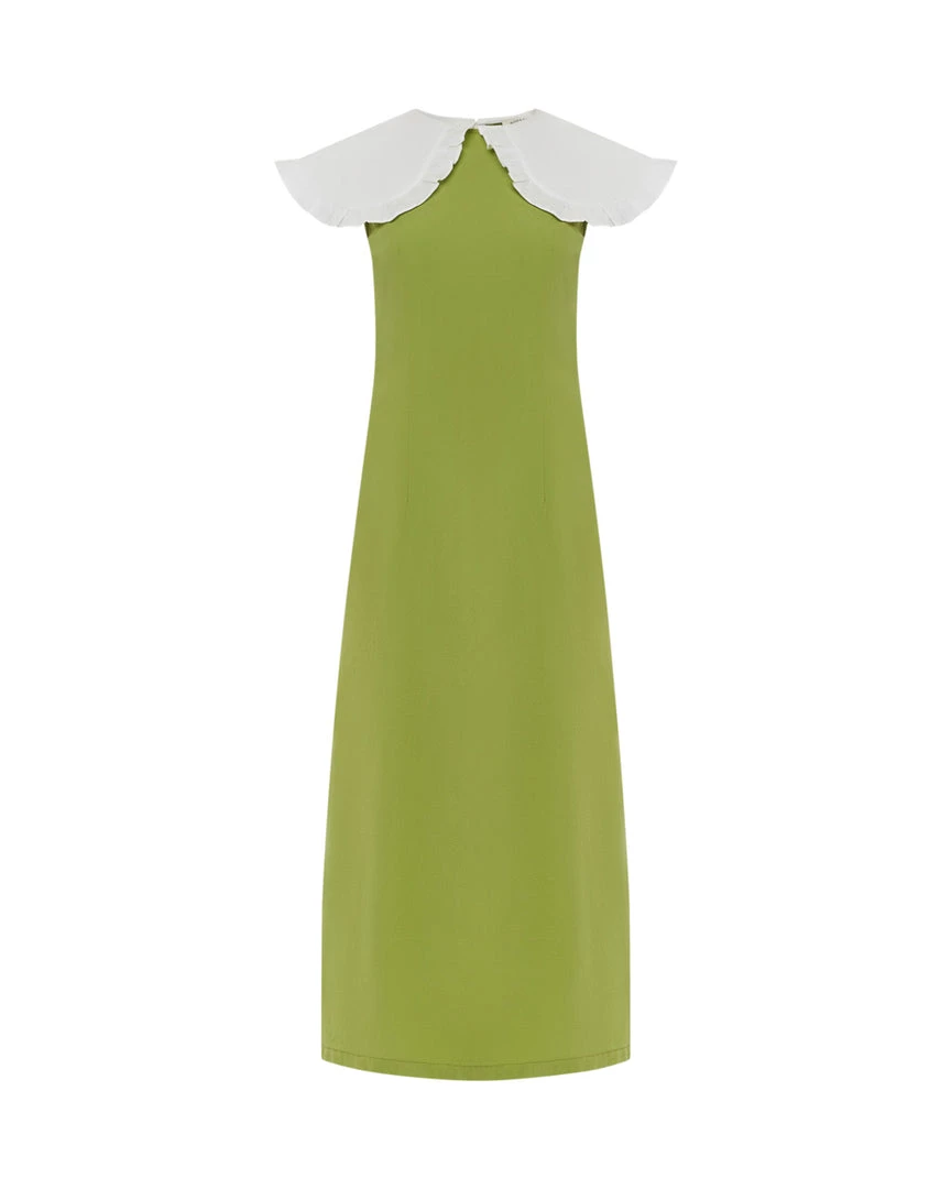 The perfect thing for taking a stroll through a botanical garden. From Ghospell, this dress has an oversized collar and a fitted, minimal silhouette.