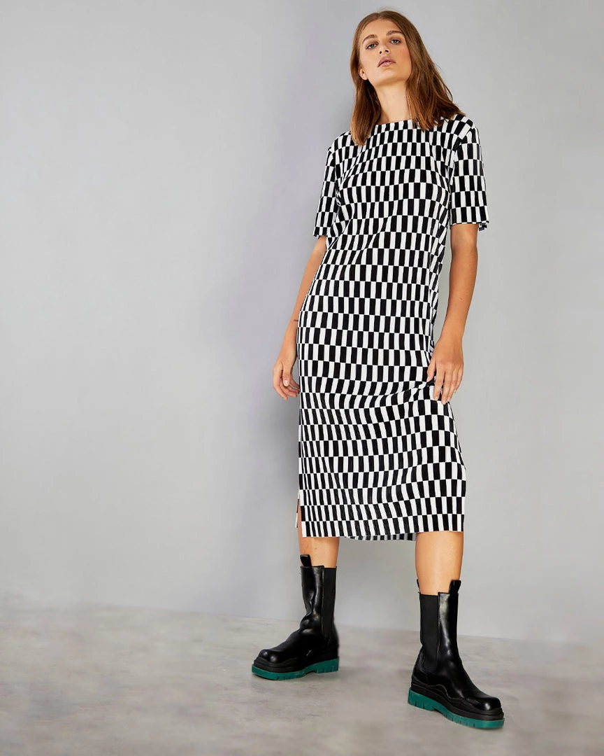 Effortlessly cool. This dress from Glamorous has a crew neck, short sleeves, and side slit.