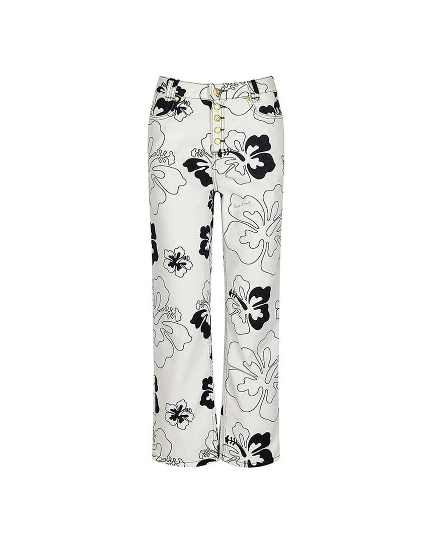 Bet you didn’t know “versatile tropical pants” were a thing. These are from House of Sunny, and they have a high waist, exposed button fly, and straight leg.