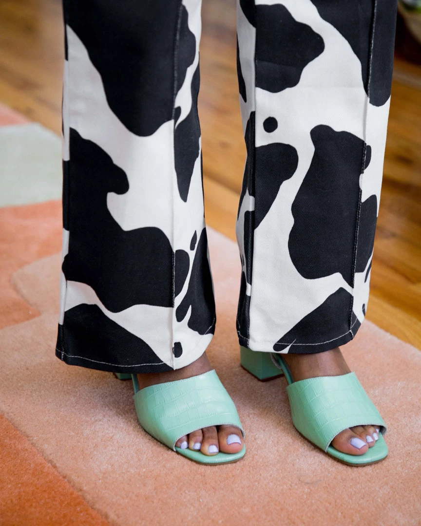 Candy-colored footwear. From Intentionally Blank, these have a subtle croc print, adjustable strap, and block heel.