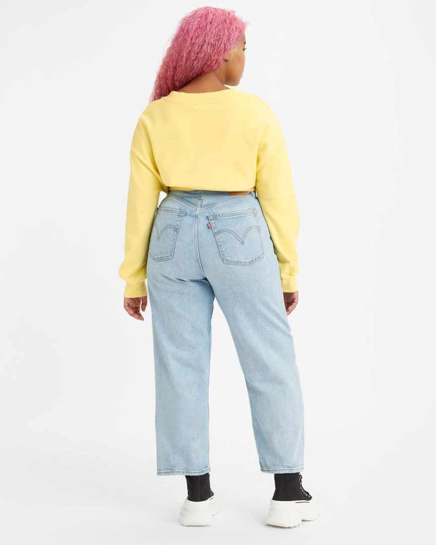 An extra high, extra flattering waist. From Levi’s, these also have a button fly, straight leg, and ankle length.