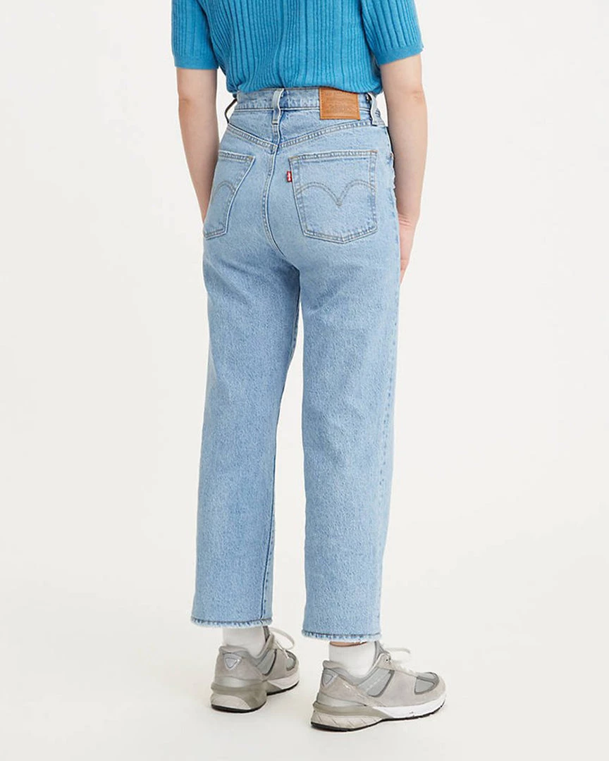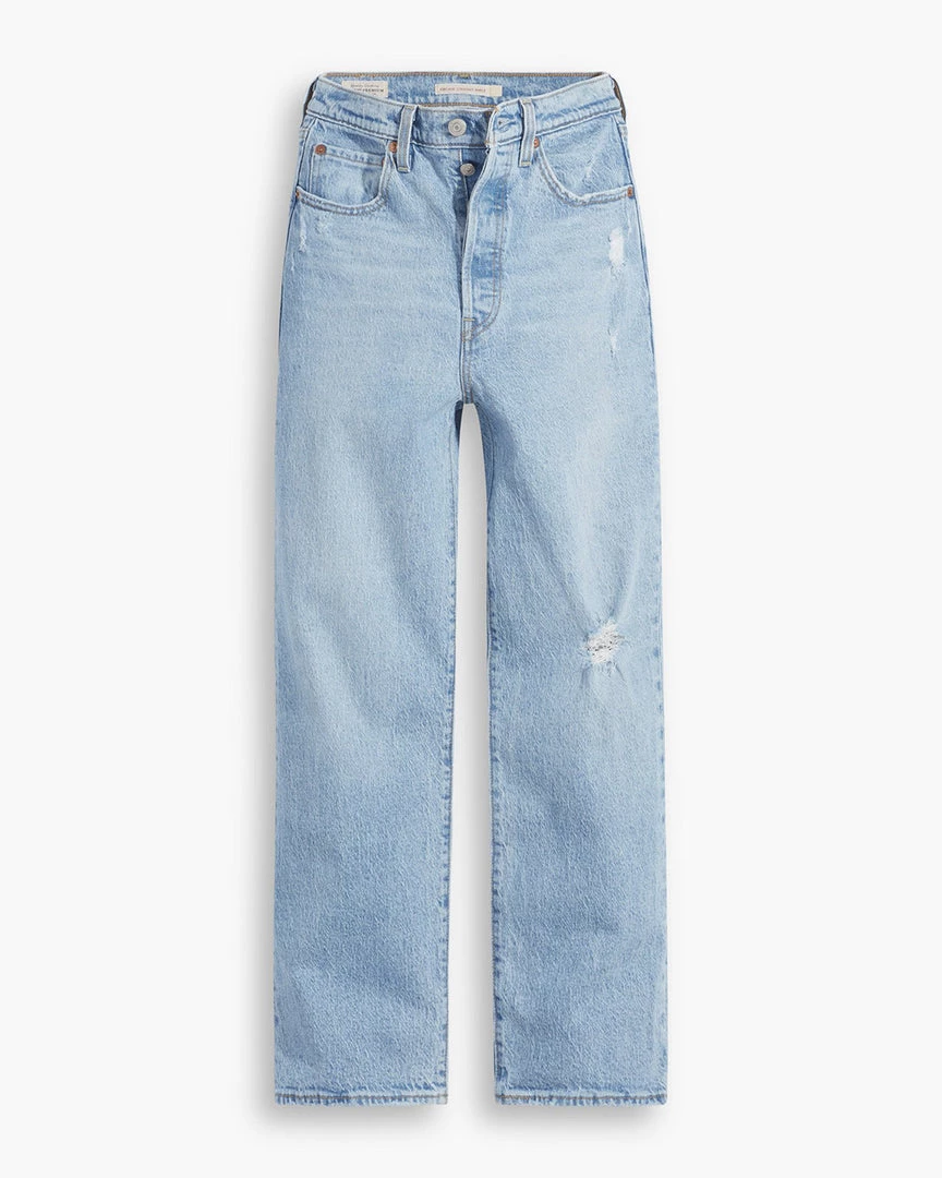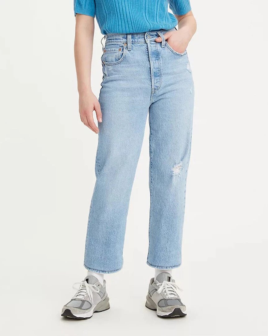 An extra high, extra flattering waist. From Levi’s, these also have a button fly, straight leg, and ankle length.
