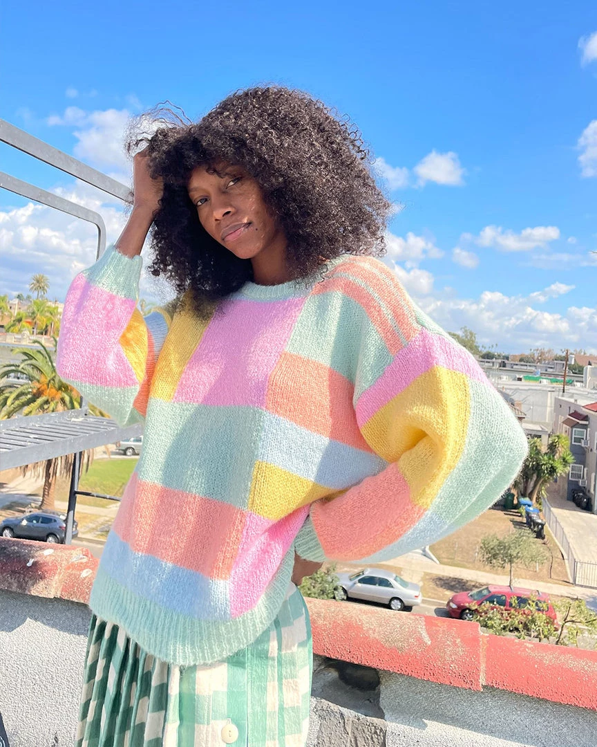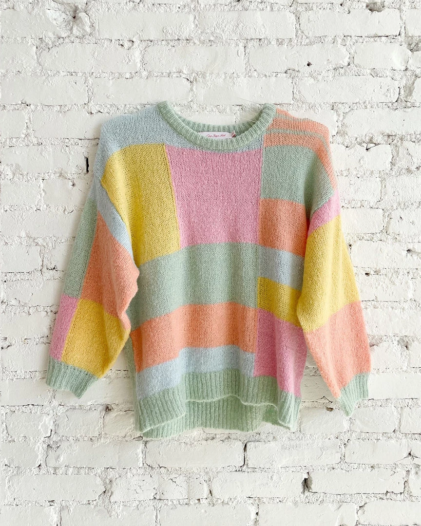 A perfect pastel block for parties or picnics. From Lisa Says Gah, this sweater has drop shoulders and an easy fit.