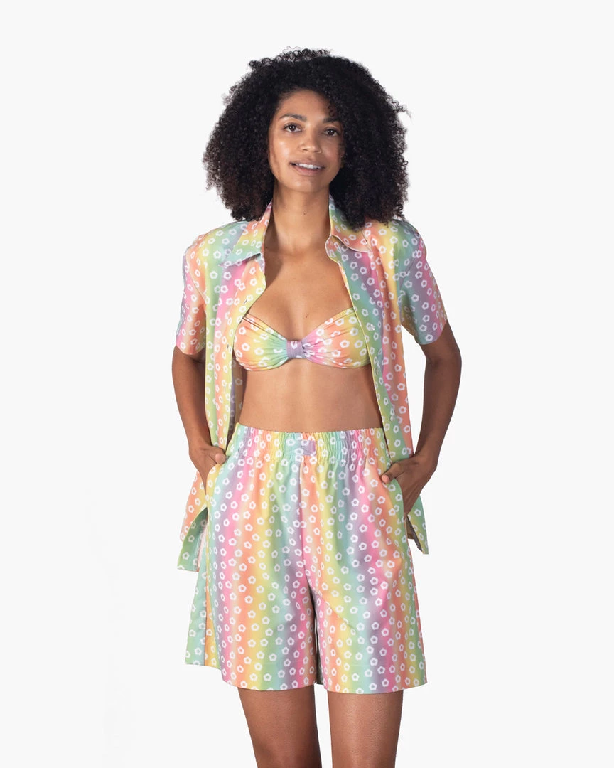 Inspired by vintage Hawaiian shirts. This top from Novel Swim has a loose fit and button-up design, and it can be worn in or out of the water.