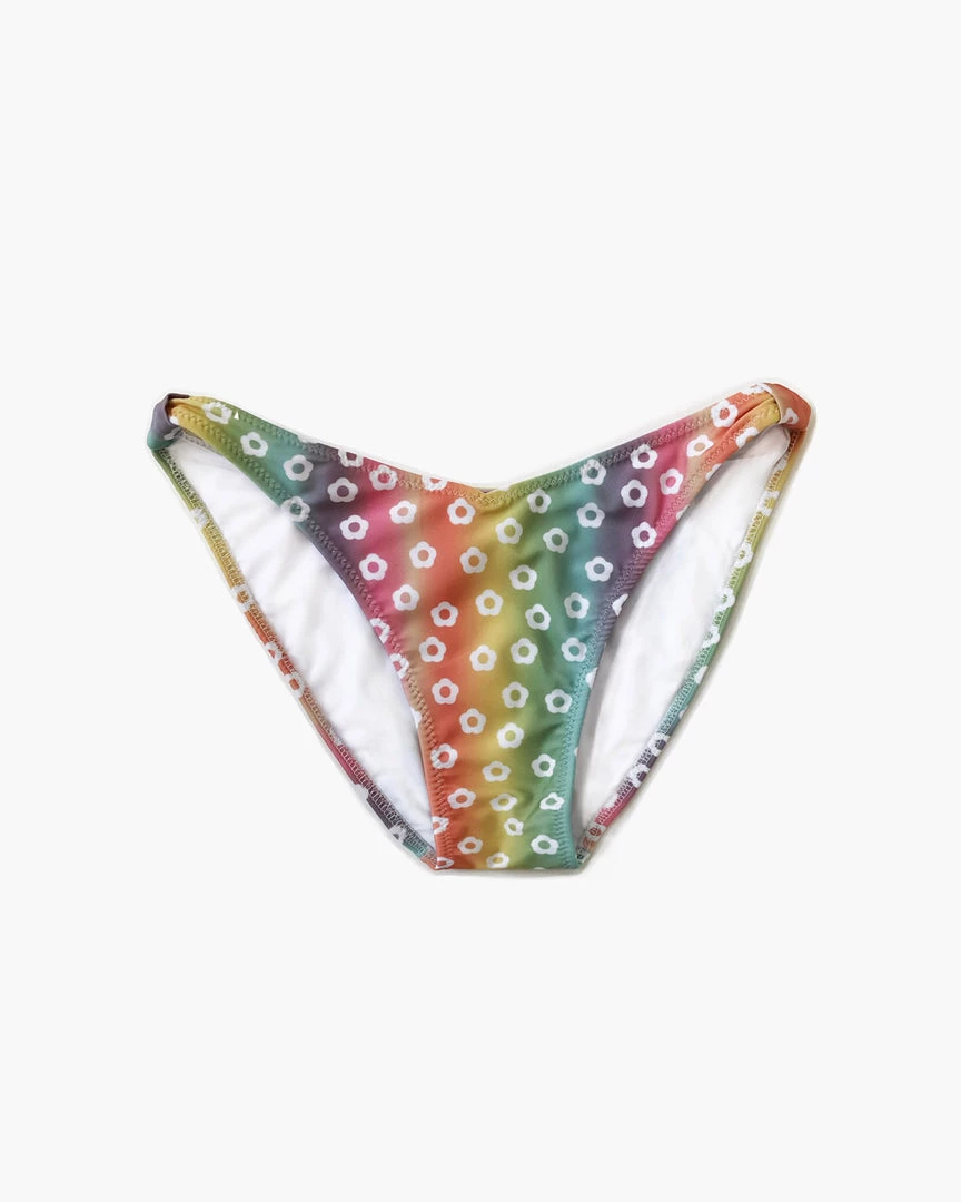Rainbow mermaid dreams are made of these. From Novel Swim, these swim bottoms have a V-cut front, band detailing, and medium coverage.