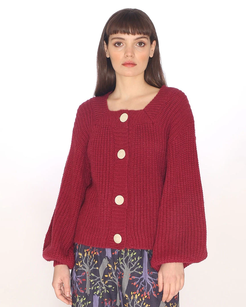 Unique necklines just don’t get the love they deserve. This knit cardigan by Pepa Loves has baggy sleeves, a button front, and (you guessed it) a square neckline.