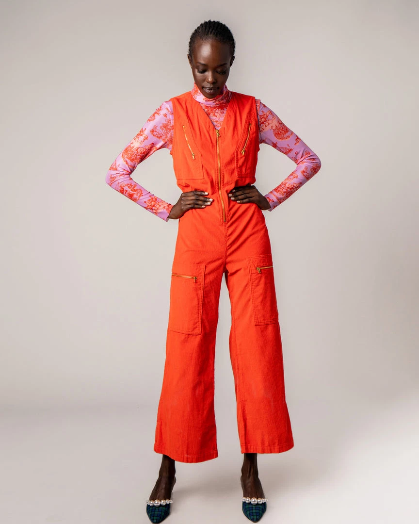 This jumpsuit? It’s so fine. It’s from Rachel Antonoff, and it has a V-neck, wide legs, and zipper details.
