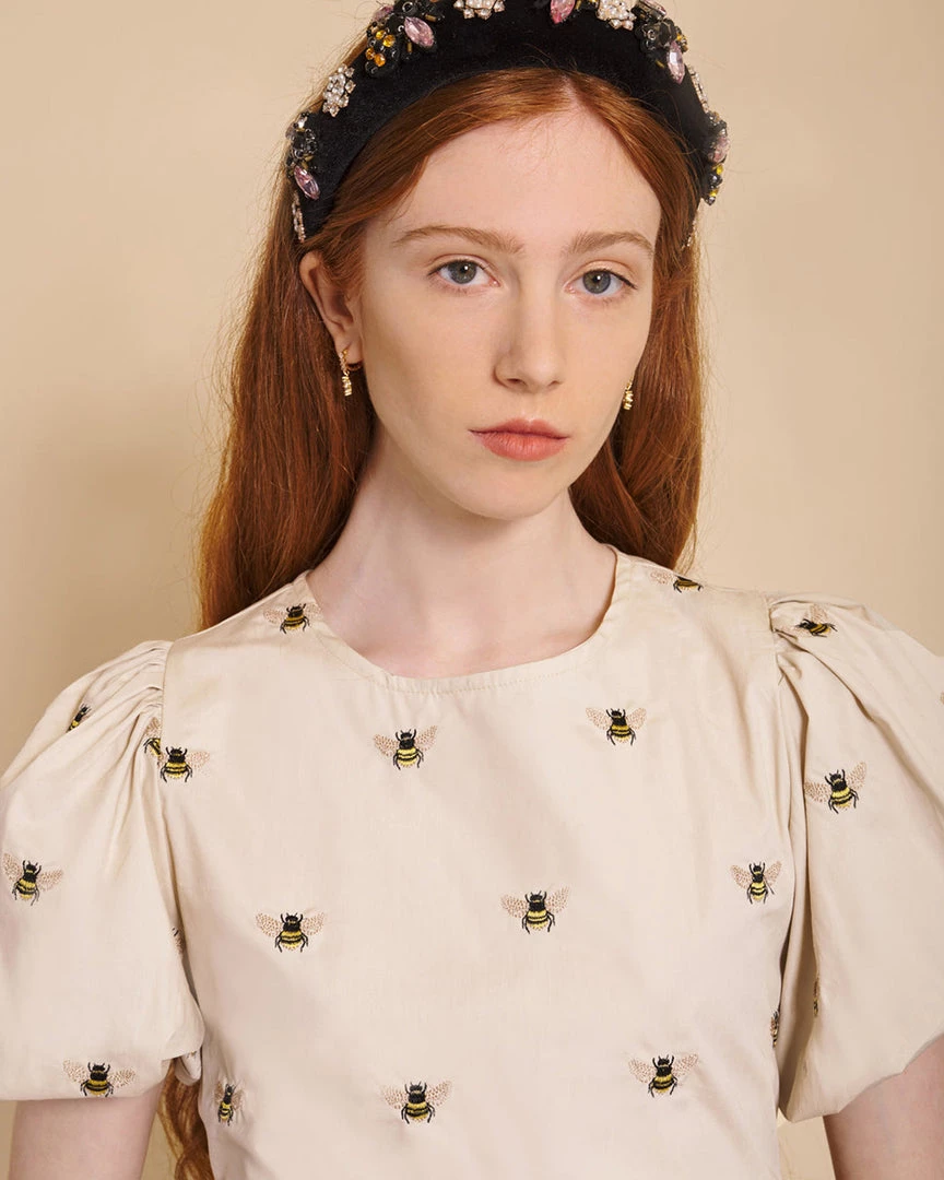 Quit beeing silly—this top was made for you. From Sister Jane, it has oversized puff sleeves, a cropped length, and the cutest embroidered bees all over it.