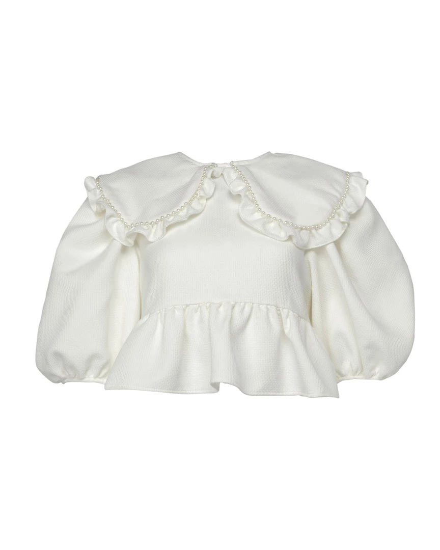 Oh, just a basic white blouse—JK. From Sister Jane, this has an oversized collar, puff sleeves, and a peplum.