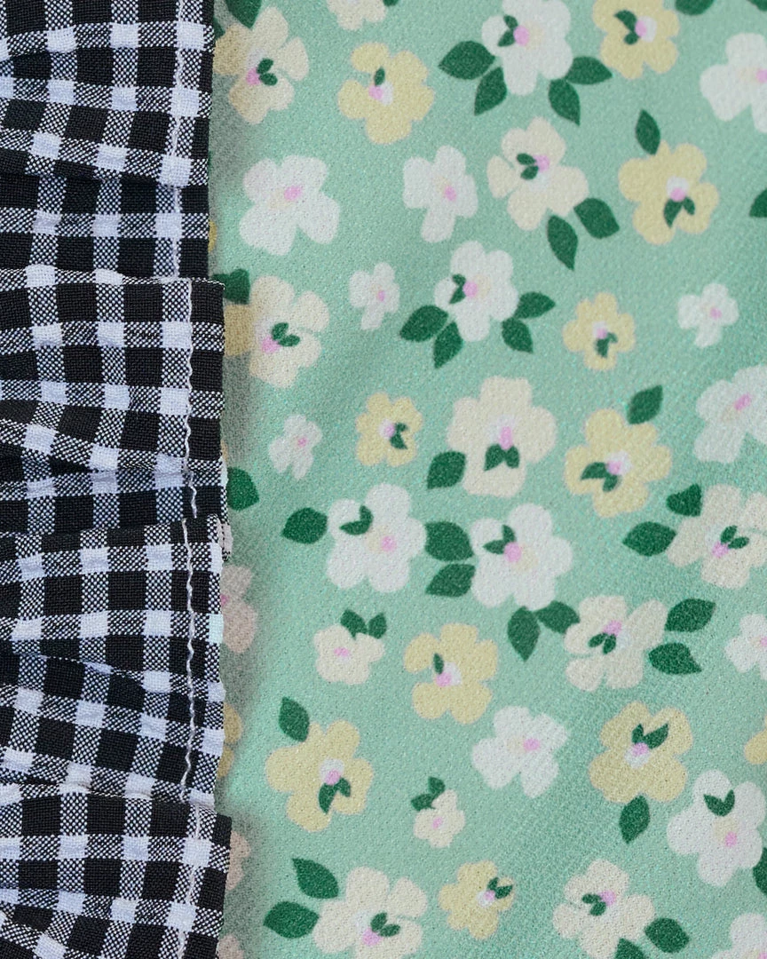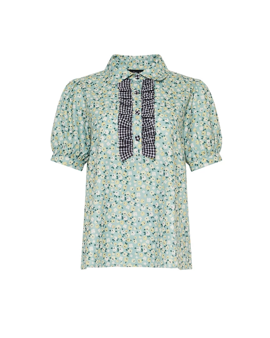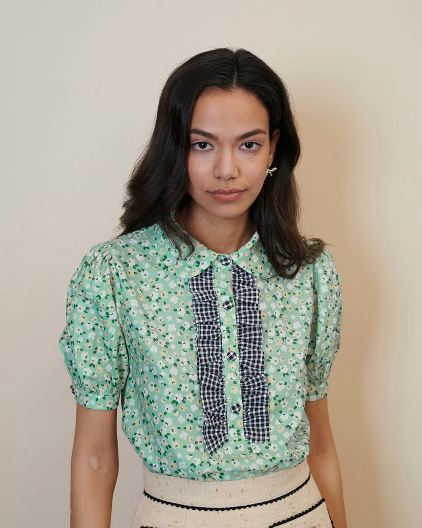 When your heart says floral, but your head says gingham. This sheer top from Sister Jane is the best of both worlds, and has puff sleeves and a front placket with ruffles.