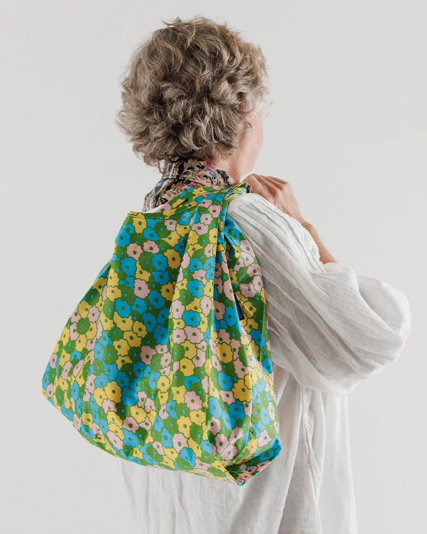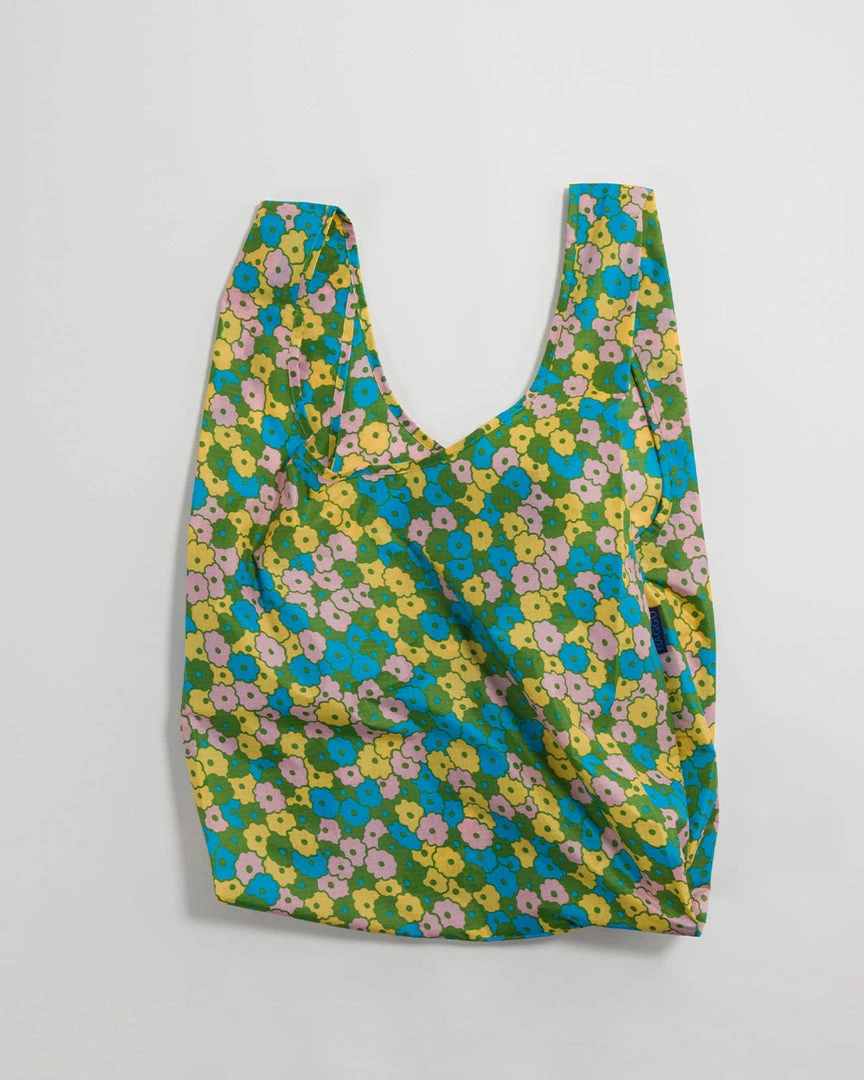 Q: What is super lightweight, can hold 50 lbs., and has a abstract floral print all over it? A: This bag from Baggu! Seriously, it can hold fifty pounds. That’s like two and a half watermelons. (FYI: We looked that up. We didn’t know a watermelon’s weight offhand.)