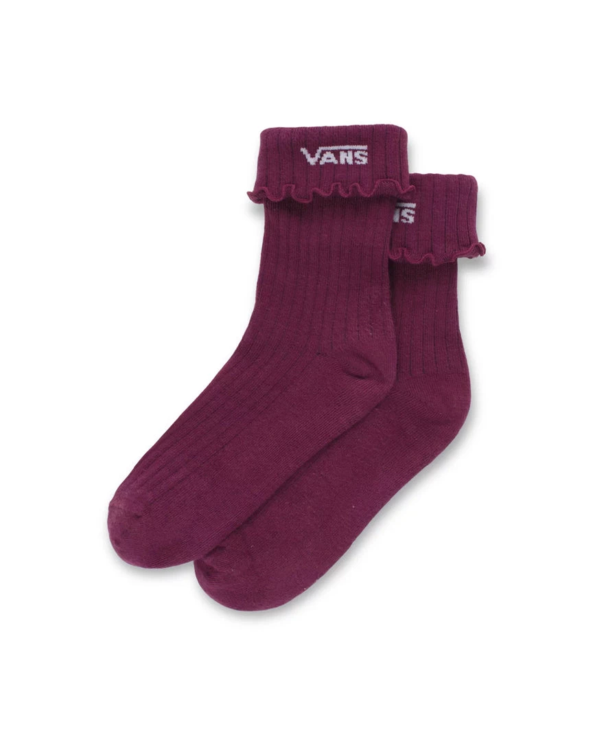 Your fancy Vans socks. These have a crew length, logo at ankle, and folded ruffle edge.