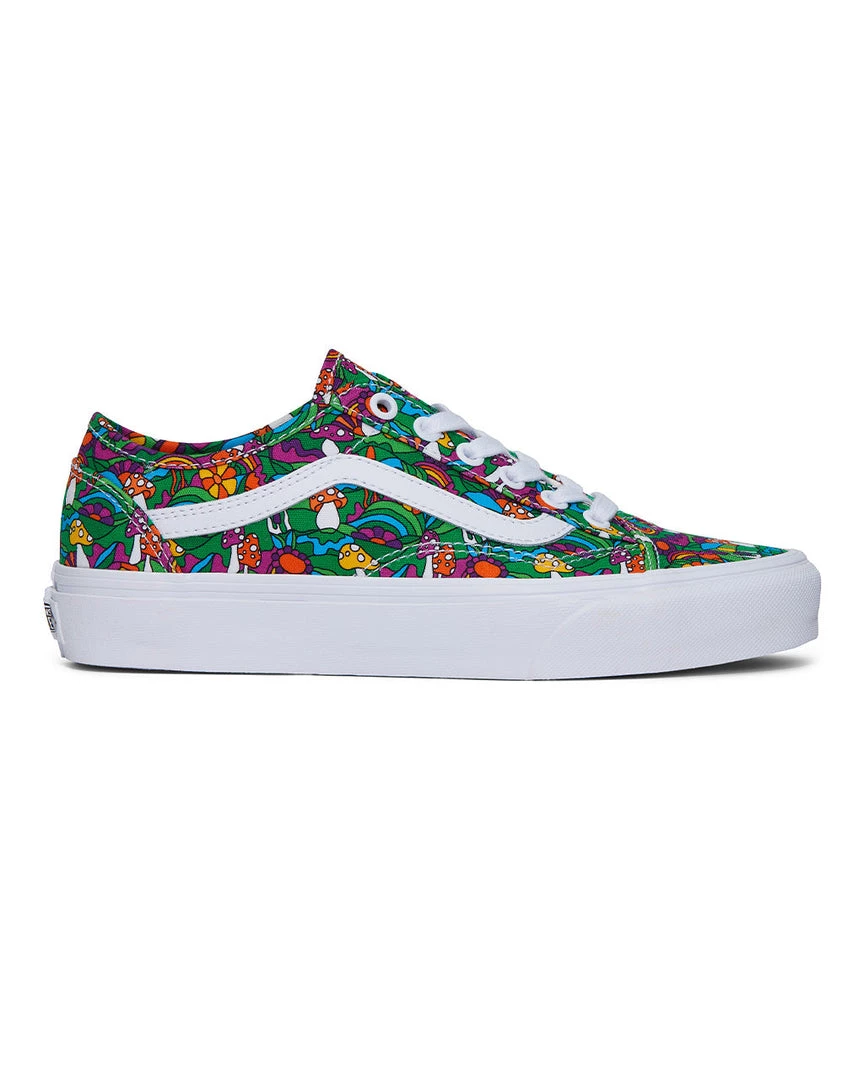The Old Skool Vans you know and love—now with a slimmer silhouette. This pair is covered (!) in a multicolored floral print, and has metal eyelets and a rubber waffle outsole.