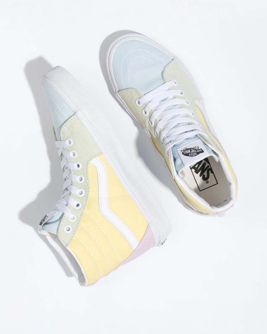 Be your own sk8er boi. These high tops from Vans feature a pastel colorblock design, supportive padded collars, and rubber waffle outsoles.